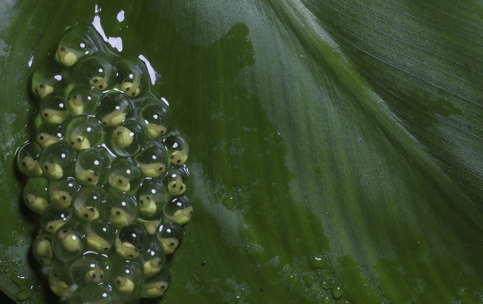 Hace tres décadas, le Dr. Karen Warkentin, actual profesore de la Universidad de Boston e investigadore asociade de STRI, se dio cuenta de que los embriones de rana de ojos rojos pueden eclosionar hasta tres días antes de su ciclo normal de desarrollo de siete días. Si consideran que la vida en su gelatinosa guardería es demasiado arriesgada, pueden salir de sus huevos y adentrarse en la relativa seguridad del agua. Pero ¿Cómo toman esta decisión las ranas embrionarias?