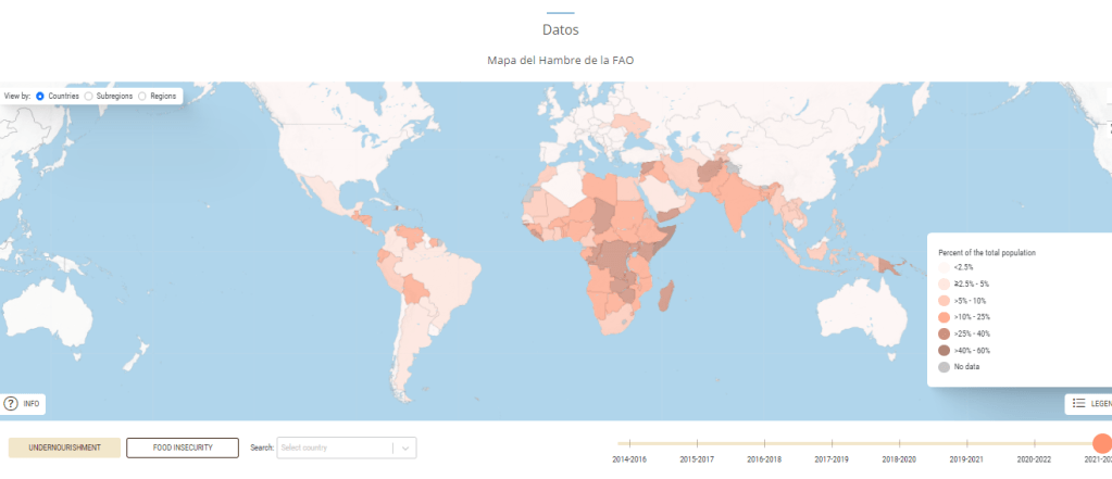 Las tendencias regionales varían significativamente: el porcentaje de la población que enfrenta el hambre sigue aumentando en África (20,4 %), se mantiene estable en Asia (8,1 %) —aunque sigue representando un desafío importante ya que la región alberga a más de la mitad de las personas que enfrentan el hambre en todo el mundo— y muestra avances en América Latina (6,2 %). Entre 2022 y 2023, el hambre aumentó en Asia occidental, el Caribe y la mayoría de las subregiones africanas.