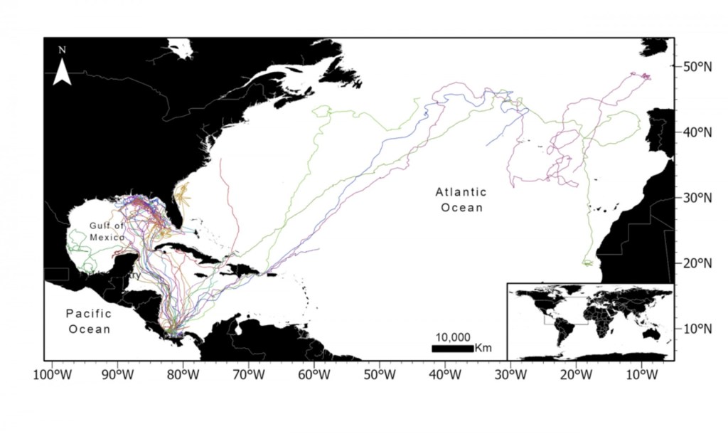 Los datos satelitales de este estudio mostraron que estas 30 tortugas originarias de una colonia en Bocas del Toro, Panamá, pasaron por las zonas económicas exclusivas de 26 países, así como por aguas internacionales. «Las extensas rutas migratorias de estas tortugas, que atraviesan aguas internacionales y nacionales, ponen de manifiesto las complejidades de la conservación transfronteriza y la necesidad de compartir datos y metodologías de investigación», escriben los autores.
